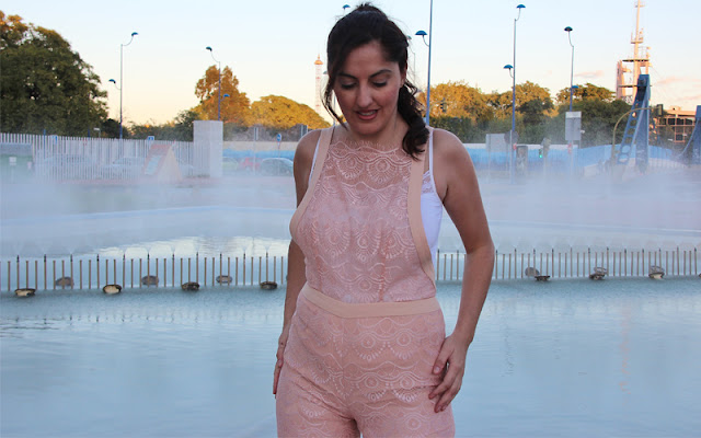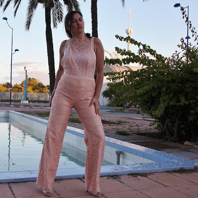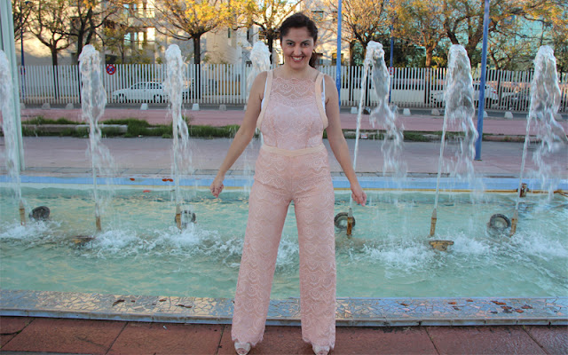 Una peculiaridad que tiene este mono es que, por su diseño y tejido, podemos usarlo tanto en eventos de día como de noche, si lo que queremos es brillar. Y para que llevéis una idea hemos realizado el reportaje fotográfico de manera que os lo muestro a la luz del día y también durante la tarde-noche. Veréis como viste igual de bien en ambos casos; eso sí, ¡obligatorio ponérselo con unos bonitos tacones que lo realcen!