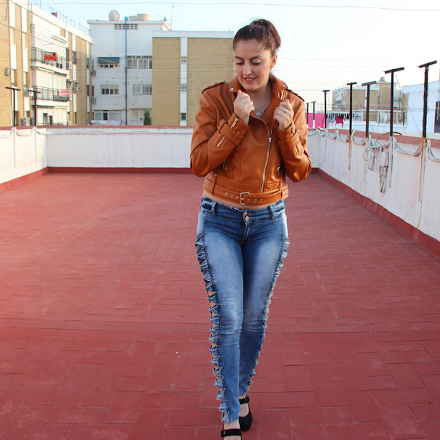 Mi nueva (y primera) adquisición de HOUSE of CB ha sido esta cazadora corta modelo Carson fabricada en cuero ecológico que será uno de mis musts de esta temporada por ser una de esas prendas que puedes combinar con falda, jeans e incluso con algún vestido. A esto también ayuda su color, un tostado con efecto brillante que casa con todos los colores con que la complementemos.