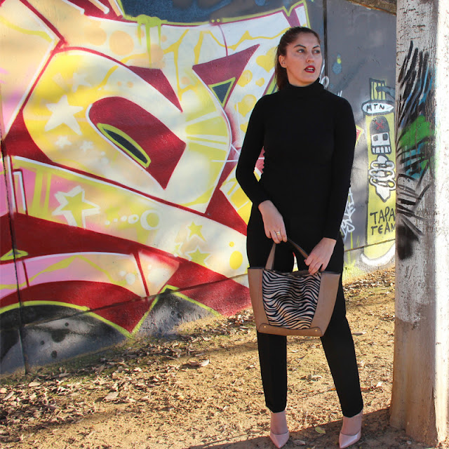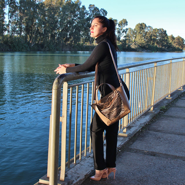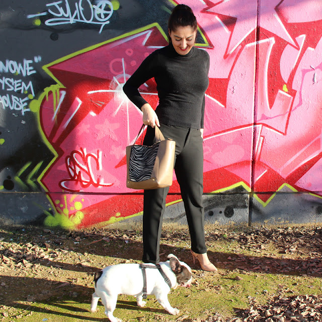 Yo creo que el conjunto ha quedado bien porque no quería incluir muchos colores en mi outfit, pero sí me apetecía romper la uniformidad del negro con el complemento, que en este caso ha sido mi GARNI MILANO. Un bolso, por otra parte, muy para este tiempo, puesto que el estampado animal print está sobre pelo sintético y este detalle me parece muy otoñal e invernal ¡Cosas mías!