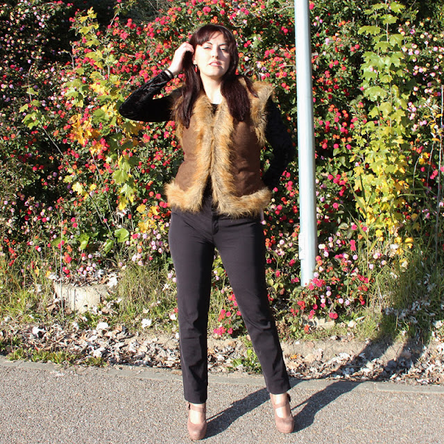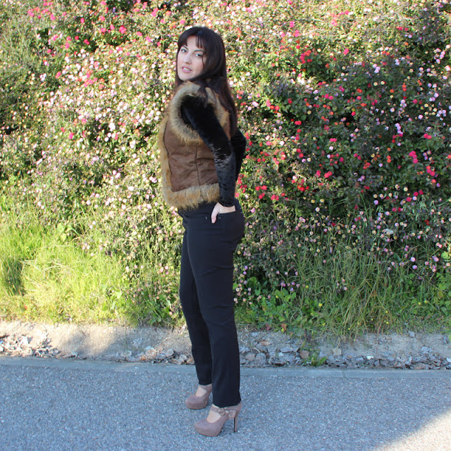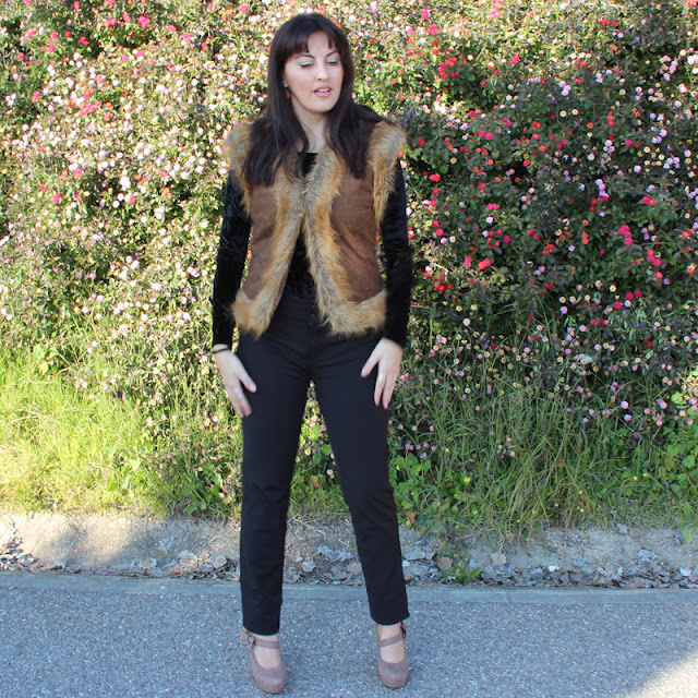 En esta ocasión me apetecía ir cómoda pero arregladita, así que opté por este pantalón negro de Kleymac en combinación con un body también negro con cuello barco y un chaleco sin mangas, aprovechando que el día no estaba demasiado frío.