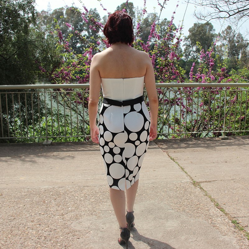 Su corte estiliza la figura y realza las curvas para poner de manifiesto la belleza de la mujer. Un recurso que me gusta mucho es la abertura en la zona baja de la parte de atrás del vestido; y su cierre de cremallera, también a la espalda, pasa totalmente desapercibido.