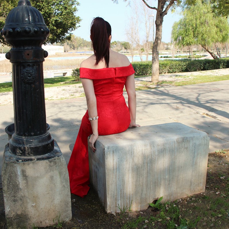 Este vestido, que pertenece a su colección Orleans, tiene un precioso escote palabra de honor en forma de corazón que potencia la sensualidad de la mujer al quedar los hombros al descubierto. Rojo “Valentino”, tiene el añadido de una generosa abertura en el lateral izquierdo. Sin embargo, se ciñe como una “segunda piel” haciéndote sentir cómoda, algo muy importante para desenvolverte con confianza.